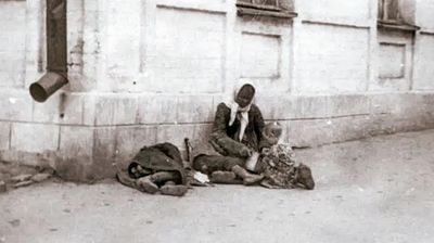 Holodomor, Kharkiv, Ukrania. madre viendo como sus dos hijos mueren de hambre.